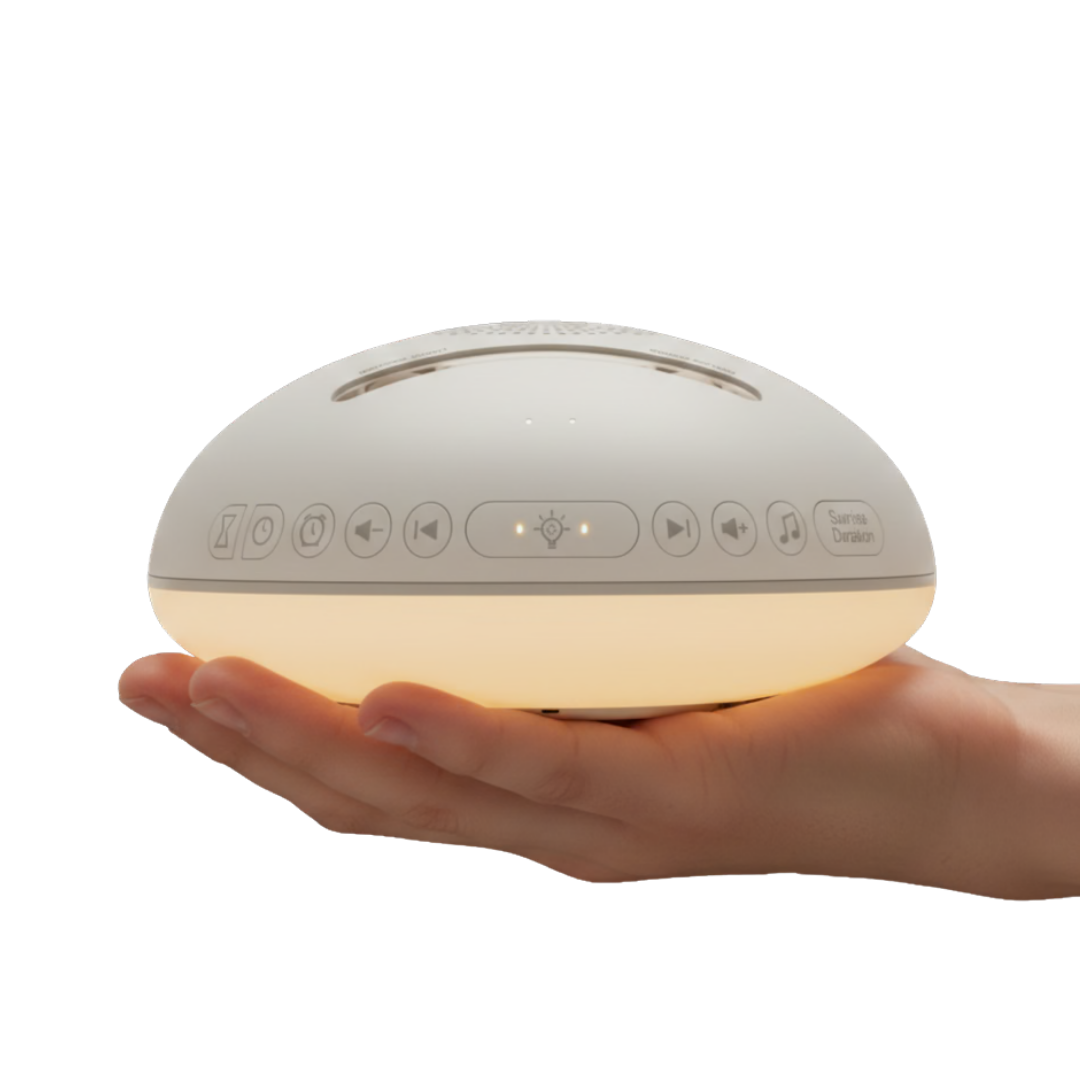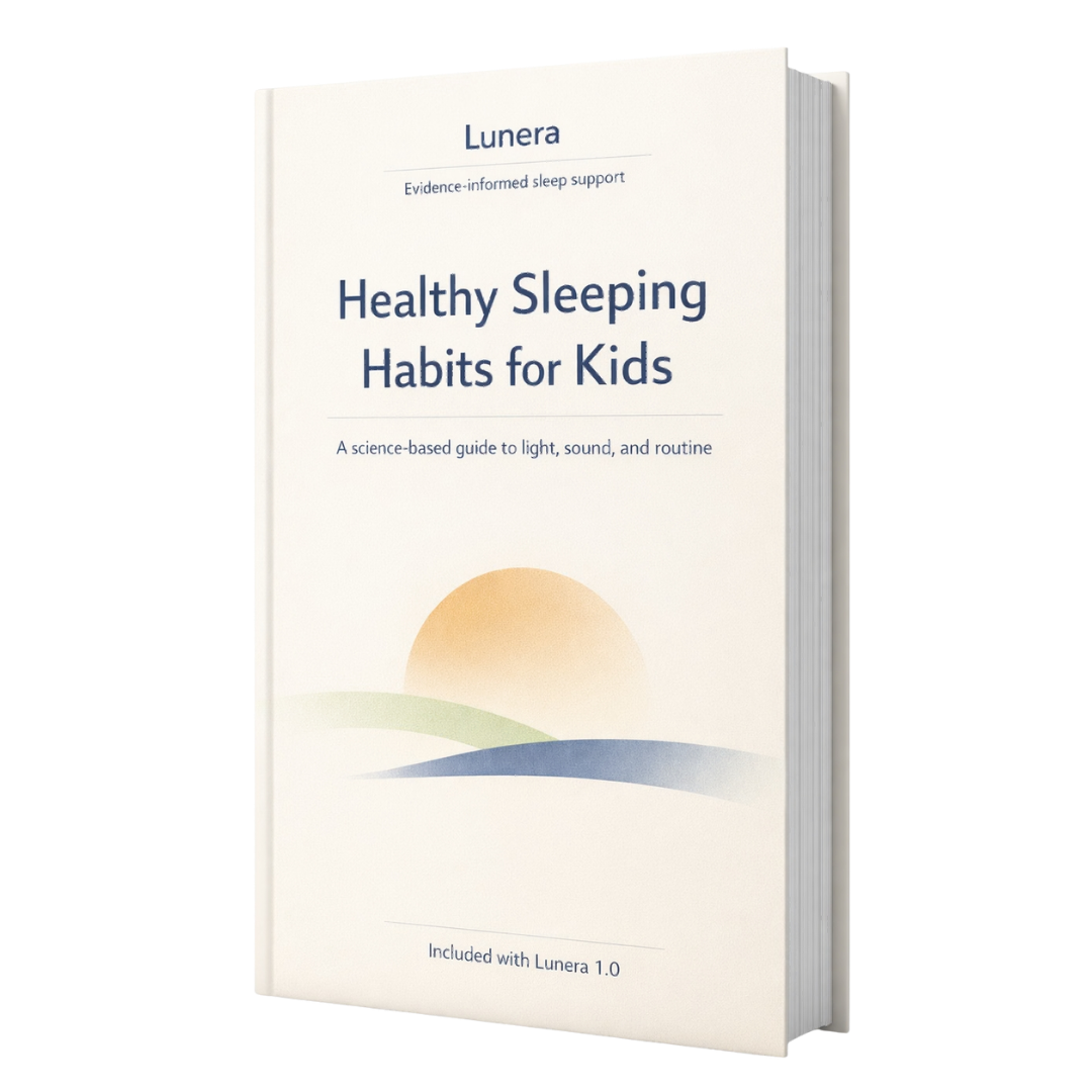 Lunera is designed to support healthier sleep environments by addressing two well-documented disruptors of sleep: unpredictable noise and inappropriate light exposure, particularly in the evening and at night. It does not induce sleep, but helps create conditions that are more conducive to it.
