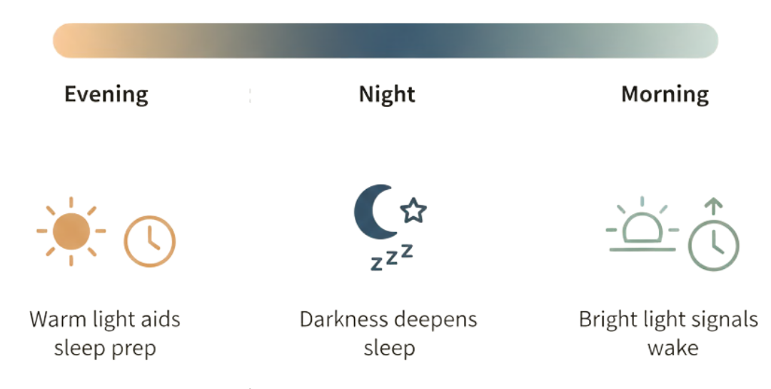 Lunera prioritizes controlled, warm light exposure to avoid sending a “daytime” signal to the brain, while using sound as a complementary tool to reduce unpredictable noise rather than override sleep physiology.
