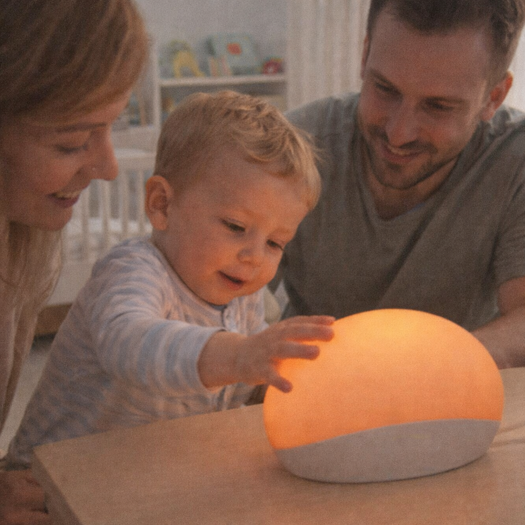 Soft, warm light in the evening and brighter light in the morning gently support your child’s natural sleep rhythm.